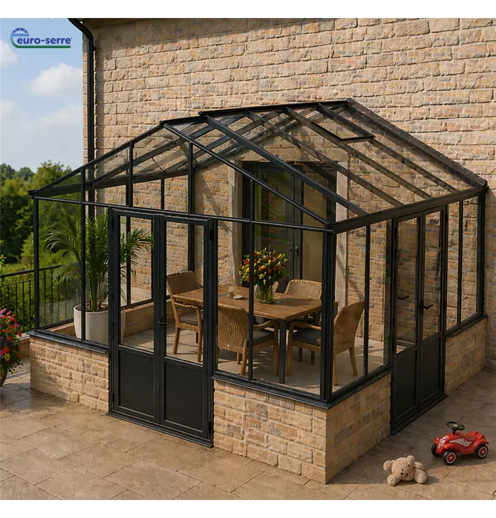 TIPP: Bitte verwenden Sie den Euro-Serre-Konfigurator (Modell Euro-Plus auf Mauer) (in englischer Sprache), wenn Sie weitere Größen oder eine andere Ausstattung wünschen. Bitte wählen Sie für die Montage direkt an die Hauswand Back against wall: yes.