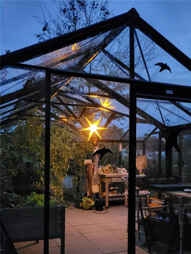 download_7235_3.jpg Wie auch immer das Gewächshaus im Sommer genutzt wurde - jetzt zum Winter stehen einige Veränderungen an. Wo bis eben noch Tomaten, Gurken & Co. geerntet wurden, sind jetzt Leerflächen. Zwar wachsen bei vielen Hobbygärtnernden noch diverse Wintergemüse und -salate, dennoch gibt es inzwischen einige ungenutzte Bereiche. Andere stellen in diesen Wochen ihre zu überwinternden Kübelpflanzen von der Terrasse ins Gewächshaus - dort sollen sie geschützt und mit gelegentlichem Kontrollblick gut durch den Winter kommen. Aber auch bei ihnen bietet das Glashaus Flächen, die sich für einen gemütlichen Liegestuhl oder sogar einen kleinen Essbereich anbieten. So wird das Gewächshaus im Winter zu einem wertvollen Draußen-Ort für die Sehnsucht nach Natur in der kalten Jahreszeit. Ob als Teehaus, Leseecke oder Ruheraum, es bieten sich verschiedenste Nutzungen an. Mit einer bequemen Sitzbank, sanfter Beleuchtung und etwas Dekoration entsteht ein persönlicher Wohlfühlort mitten im Garten, den man während der kalten Jahreszeit gern aufsucht. „Gerade jetzt im Herbst, wenn es schon früh dunkel wird, ist das beleuchtete Gewächshaus natürlich ein ganz besonderer Hingucker", weiß Markus Botz von der BOMA Gewächshaus GmbH. „Viele nutzen das Gewächshaus deshalb auch für die Advents- und Weihnachtsdekoration." Der Herrnhuter Stern hängt vor Wind und Wetter geschützt unter dem Glas, draußen bringt eine Lichterkette das Gewächshaus zum Leuchten und setzt den Rahmen wunderbar in Szene. Tannenzweige, die im Innern den Raum schmücken, Teelichter, die im Dunkeln funkeln und Laternen, die den Weg zum Gewächshaus erleuchten - so wird die Vorweihnachtszeit im Garten auf zauberhafte Weise eingeläutet. Zugleich ist so ein festliches Glashaus auch der perfekte Ort für eine nette Runde mit Nachbarn und Freunden - bei Tee oder Glühwein, Keksen, Weihnachtsstollen ... oder eben Köstlichkeiten vom Grill.