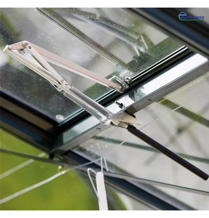 Sie haben die Wahl wie Sie Ihre Dachfenster der Euro-Serre Gewächshäuser öffnen: