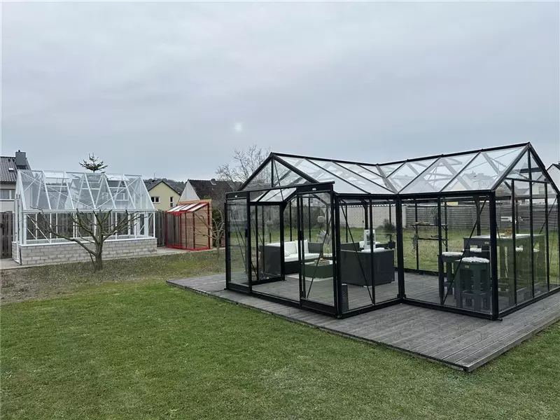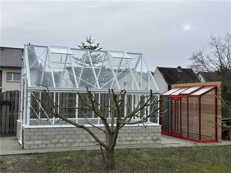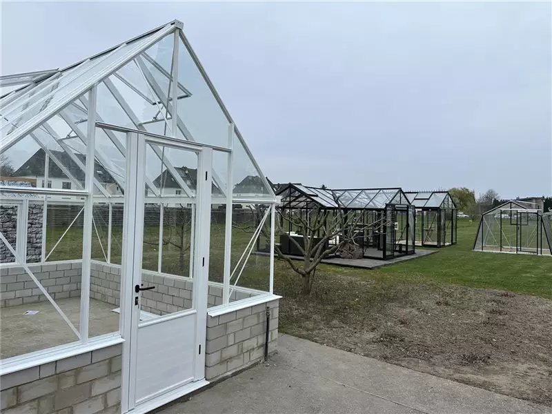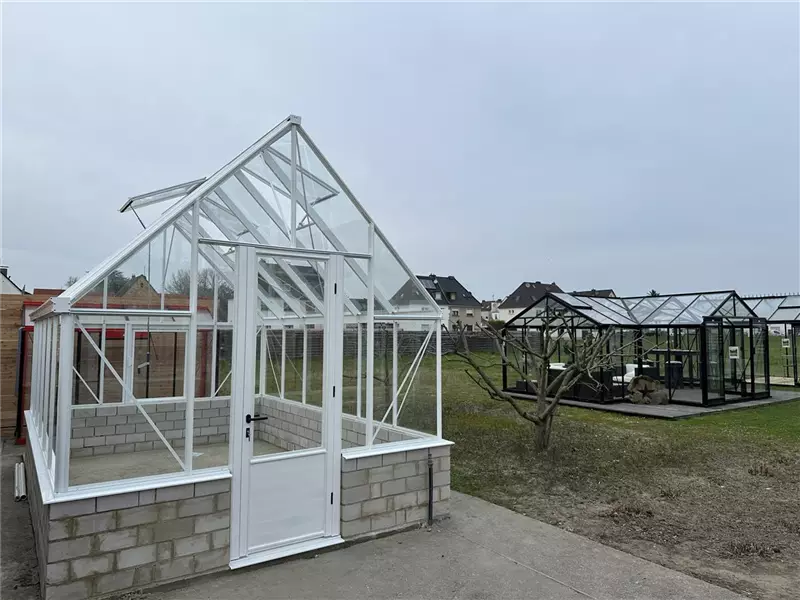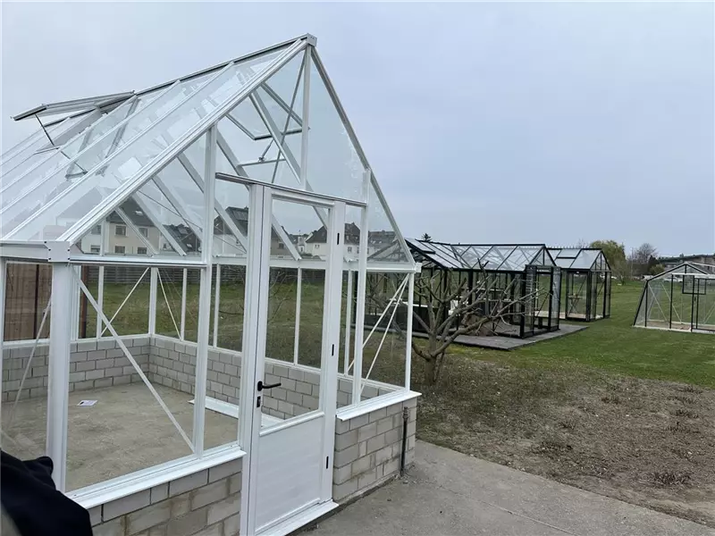 Aktuell können Sie drei Gewächshäuser bei uns begutachten. Es sind die Orangerie Sophie, das ACD R306 XH und das Modell S104 mit schrägen Wänden. Weitere Modelle, auch von Euro-Serre folgen in 2026.