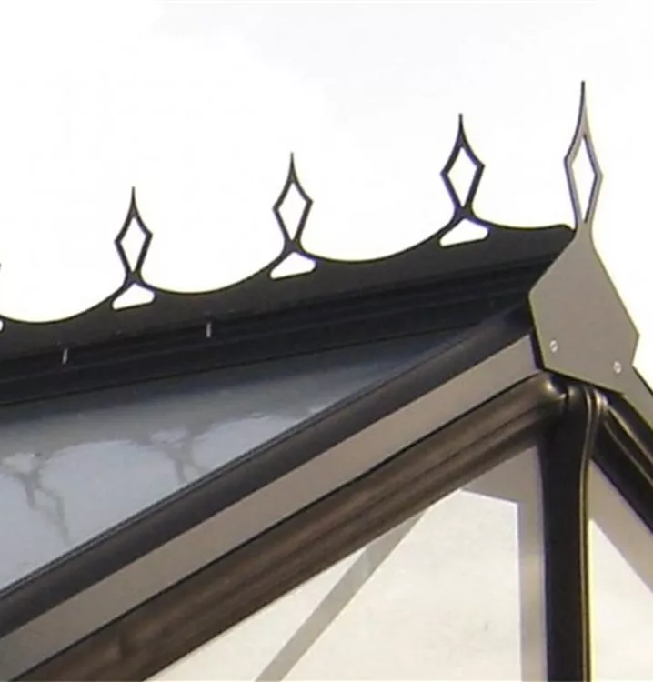 Der Firstschmuck sieht nicht nur schön aus, er ist auch praktisch. Unsere Vorfahren haben sich schon überlegt, wie sie, durch Vogelkot verschmutzte Gewächshausscheiben,verhindern können. Der Firstschmuck ist die Lösung.