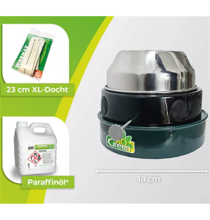 Lieferumfang: Gewächshausheizung Warmax inklusive 4 Liter Paraffin (40 €)